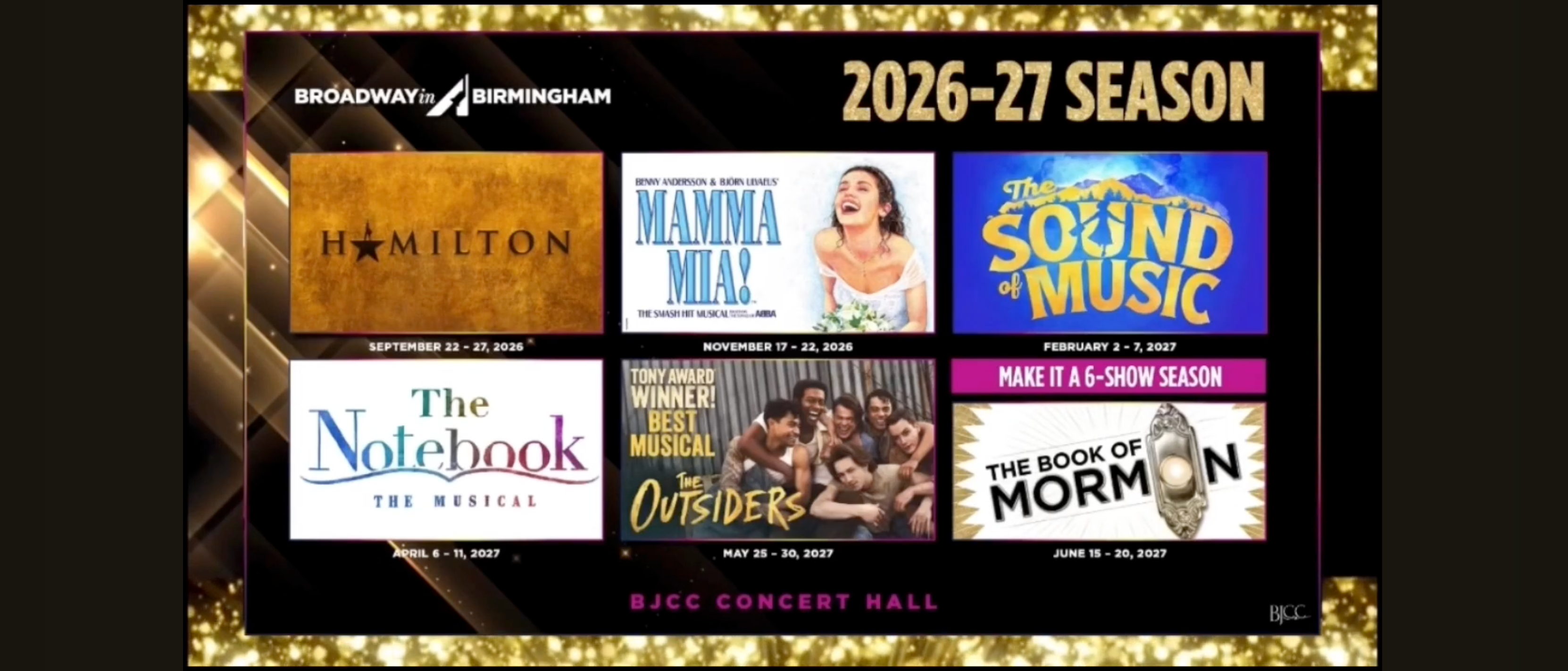 Please note: BroadwayInBirmingham.com, Ticketmaster.com, and the BJCC Central Ticket Office are the only official sources for tickets to shows in the 2026-27 Broadway in Birmingham Series. If you purchase tickets through another source, you may pay inflated prices, and your tickets will not be guaranteed.