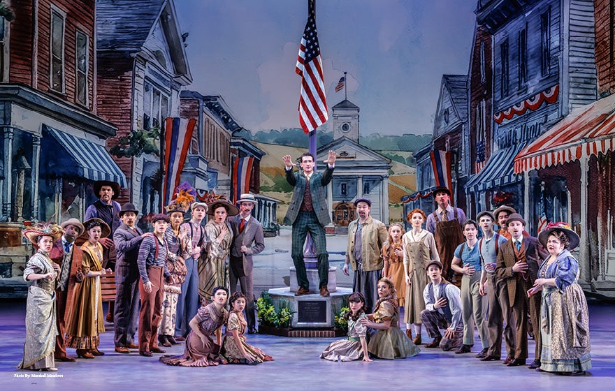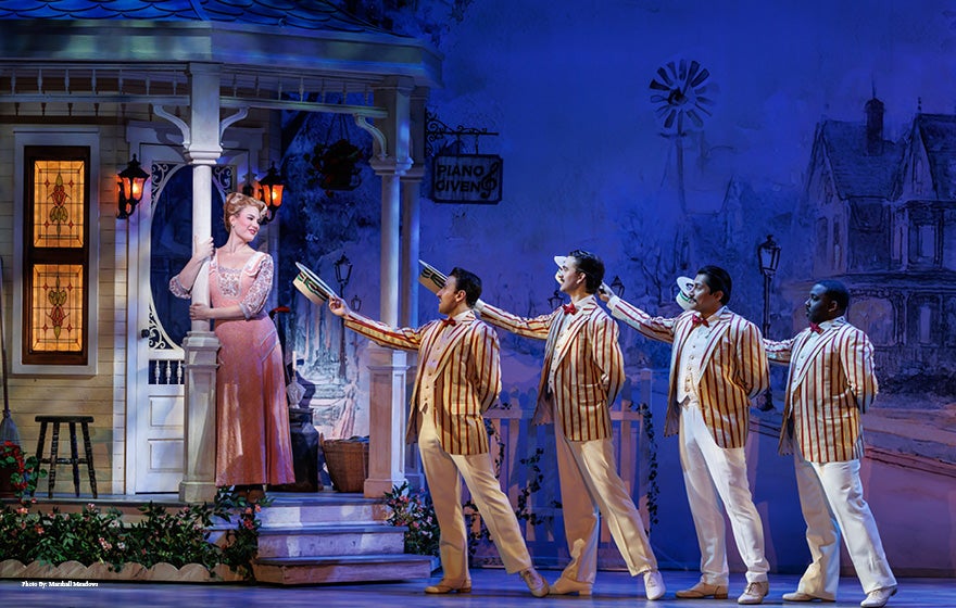 There's trouble in River City when a fast-talking salesman gets his heart stolen by the town librarian. Meredith Willson's six-time, Tony Award-winning musical comedy The Music Man follows fast-talking traveling salesman, Harold Hill, as he cons the people of River City, Iowa, into buying instruments and uniforms for a boys' band that he vows to organize – this, despite the fact that he doesn't know a trombone from a treble clef. His plans to skip town with the cash are foiled when he falls for Marian, the librarian, who transforms him into a respectable citizen by curtain's fall. Featuring songs such as "Seventy-Six Trombones," "Trouble," "'Til There Was You," "Pickalittle" and “Gary, Indiana," The Music Man is a family-friendly story to be shared with every generation.